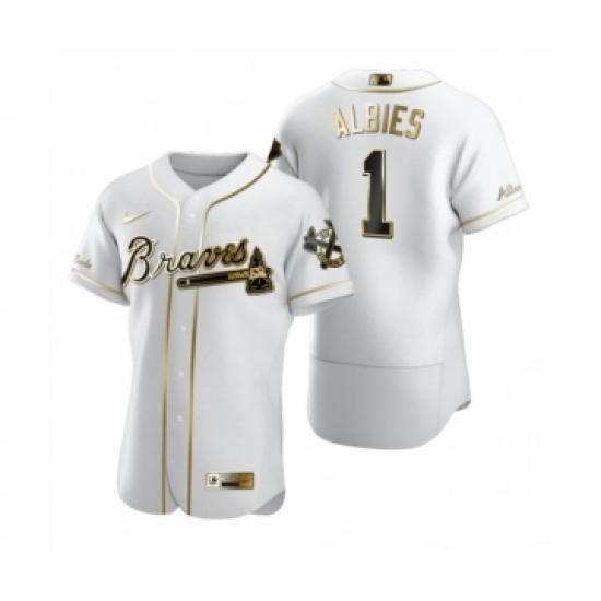 Men's Atlanta Braves #1 Ozzie Albies White 2022 Gold Program Authentic Player Jersey