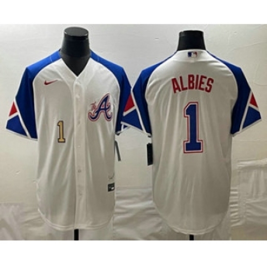 Men's Atlanta Braves #1 Ozzie Albies White 2023 City Connect Cool Base Stitched Jersey