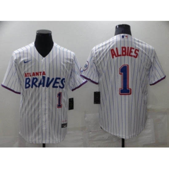Men's Atlanta Braves #1 Ozzie Albies White 2021 City Connect Stitched MLB Cool Base Nike Jersey