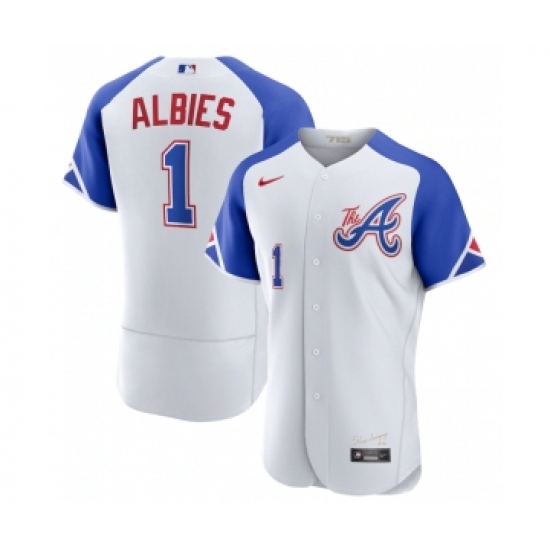 Men's Atlanta Braves #1 Ozzie Albies White 2023 City Connect Flex Base Stitched Jersey