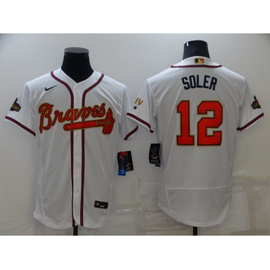 Men's Atlanta Braves #12 Jorge Soler White 2022 Gold Program Authentic Player Jersey