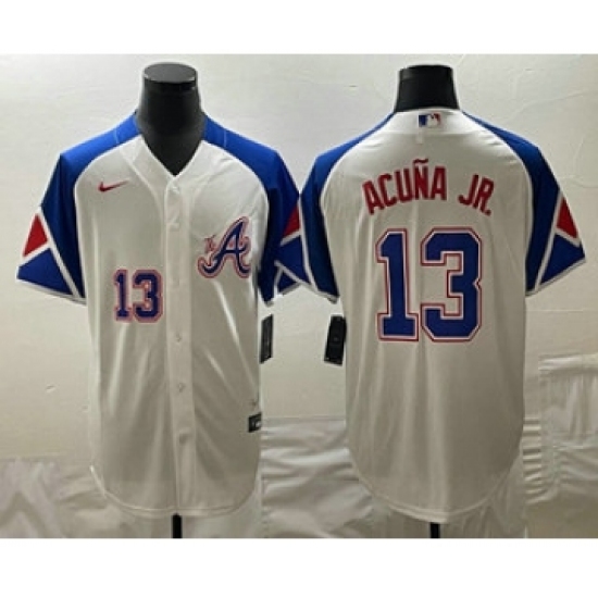 Men's Atlanta Braves #13 Ronald Acuna Jr Number White 2023 City Connect Cool Base Stitched Jersey