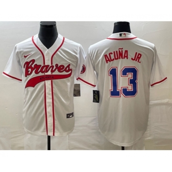 >Men's Atlanta Braves #13 Ronald Acuna Jr White Cool Base Stitched Baseball Jersey1
