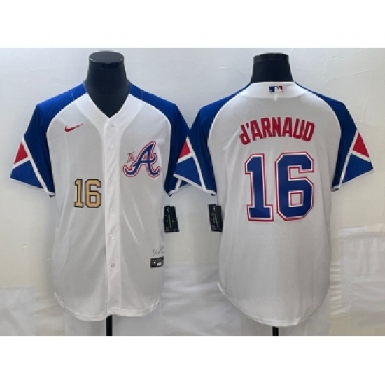 Men's Atlanta Braves #16 Travis dArnaud Number White 2023 City Connect Cool Base Stitched Jerseys