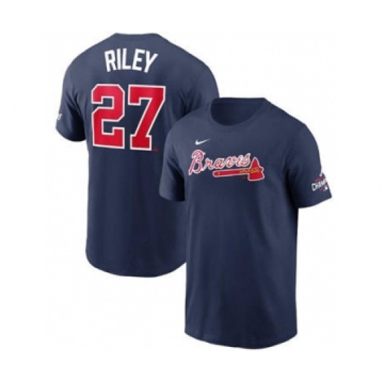 Men's Atlanta Braves #27 Austin Riley 2021 Navy World Series Champions Player Name & Number T-Shirt