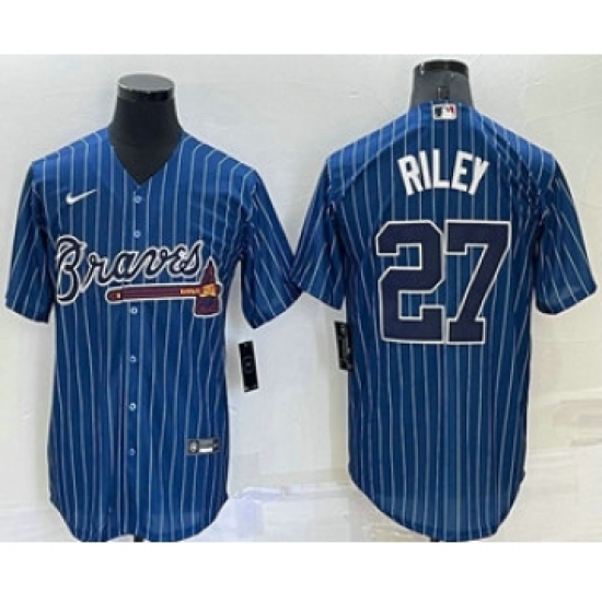 Men's Atlanta Braves #27 Austin Riley Navy Blue Pinstripe Stitched MLB Cool Base Nike Jersey