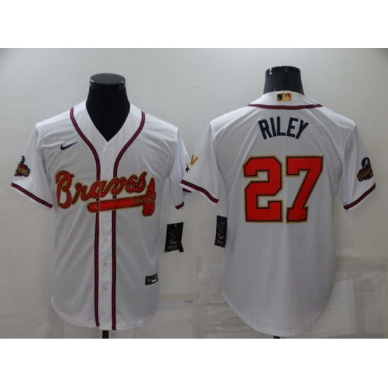 Men's Atlanta Braves #27 Austin Riley White 2022 Gold Program Authentic Player Jersey