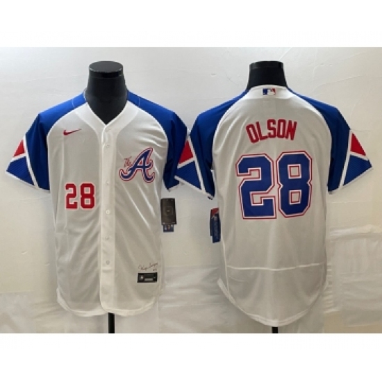 Men's Atlanta Braves #28 Matt Olson White 2023 City Connect Flex Base Stitched Jersey