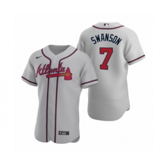 >Men's Atlanta Braves #7 Dansby Swanson Nike Gray Authentic 2020 Road Jersey