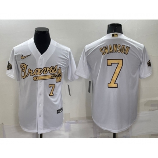 >Men's Atlanta Braves #7 Dansby Swanson Number White 2022 All Star Stitched Cool Base Nike Jersey