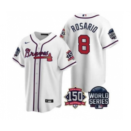 Men's Atlanta Braves #8 Eddie Rosario 2021 White World Series With 150th Anniversary Patch Cool Base Stitched Jersey