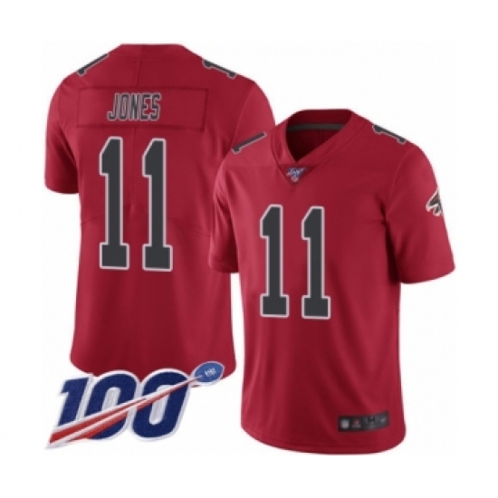 >Men's Atlanta Falcons #11 Julio Jones Limited Red Rush Vapor Untouchable 100th Season Football Jersey