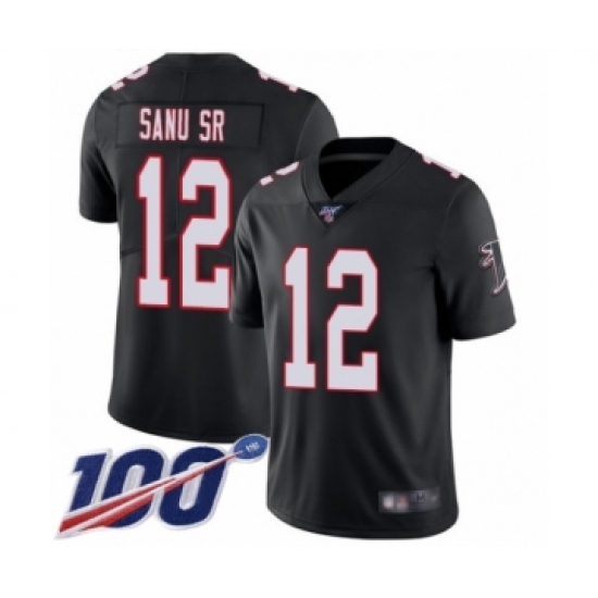 >Men's Atlanta Falcons #12 Mohamed Sanu Black Alternate Vapor Untouchable Limited Player 100th Season Football Jersey