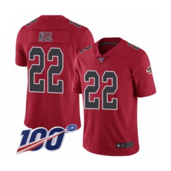 >Men's Atlanta Falcons #22 Keanu Neal Limited Red Rush Vapor Untouchable 100th Season Football Jersey