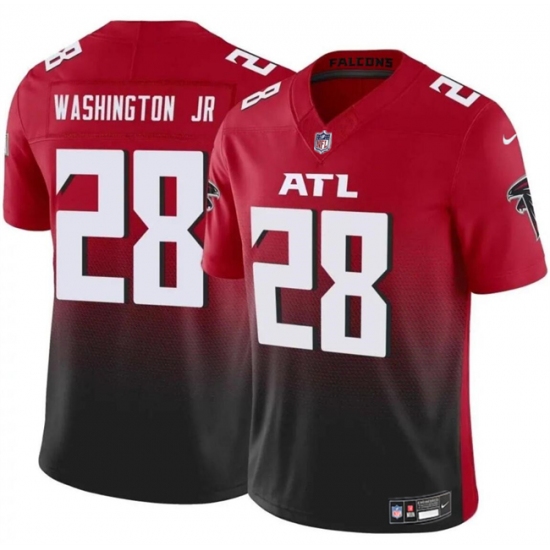 >Men's Atlanta Falcons #28 Carlos Washington Jr Red Black 2024 F.U.S.E Vapor Untouchable Limited Football Stitched Jersey