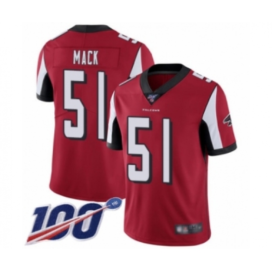 >Men's Atlanta Falcons #51 Alex Mack Red Team Color Vapor Untouchable Limited Player 100th Season Football Jersey