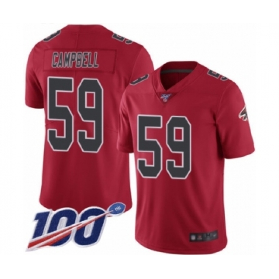 >Men's Atlanta Falcons #59 De'Vondre Campbell Limited Red Rush Vapor Untouchable 100th Season Football Jersey