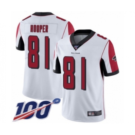 >Men's Atlanta Falcons #81 Austin Hooper White Vapor Untouchable Limited Player 100th Season Football Jersey