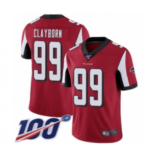 Men's Atlanta Falcons #99 Adrian Clayborn Red Team Color Vapor Untouchable Limited Player 100th Season Football Jersey