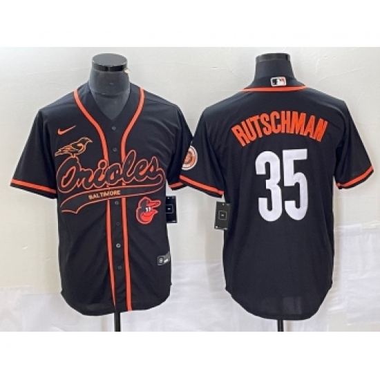 >Men's Baltimore Orioles #35 Adley Rutschman Black With Patch Cool Base Stitched Baseball Jersey