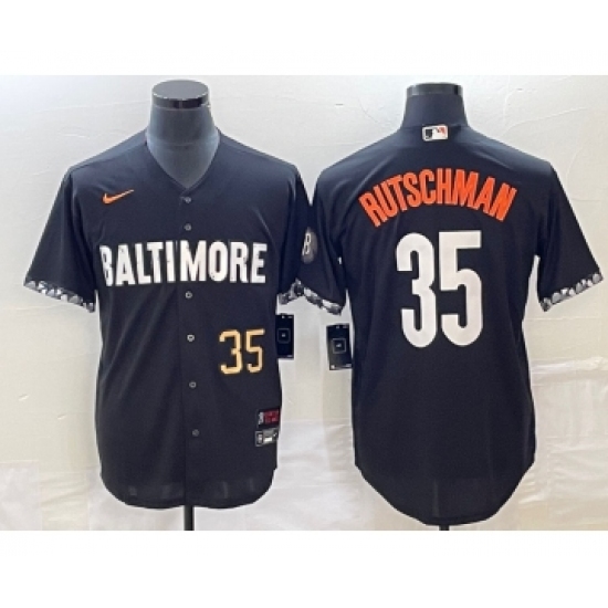 >Men's Baltimore Orioles #35 Adley Rutschman Number Black 2023 City Connect Cool Base Stitched Jersey 2