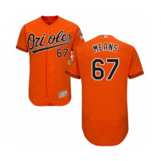 >Men's Baltimore Orioles #67 John Means Orange Alternate Flex Base Authentic Collection Baseball Jersey
