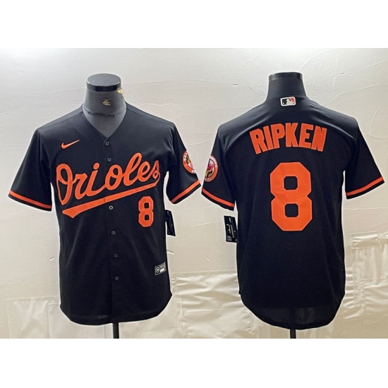 Men's Baltimore Orioles #8 Cal Ripken Jr Number Black Cool Base Stitched Jersey