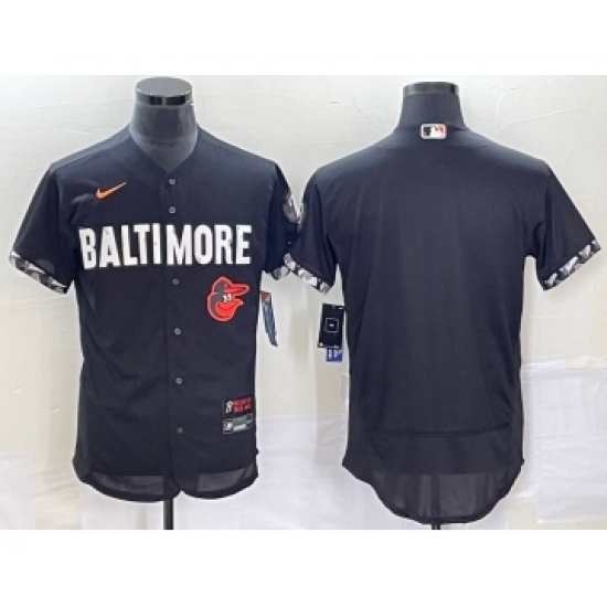 Men's Baltimore Orioles Blank Black 2023 City Connect Flex Base Stitched Jersey 1