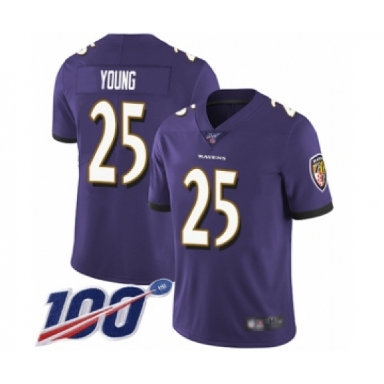 Men's Baltimore Ravens #25 Tavon Young Purple Team Color Vapor Untouchable Limited Player 100th Season Football Jersey