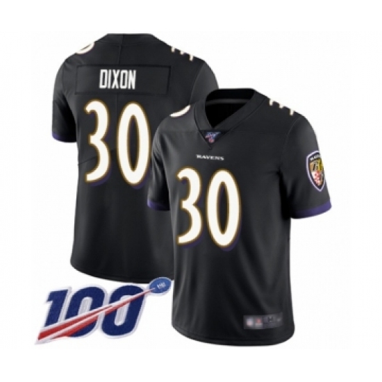 Men's Baltimore Ravens #30 Kenneth Dixon Black Alternate Vapor Untouchable Limited Player 100th Season Football Jersey