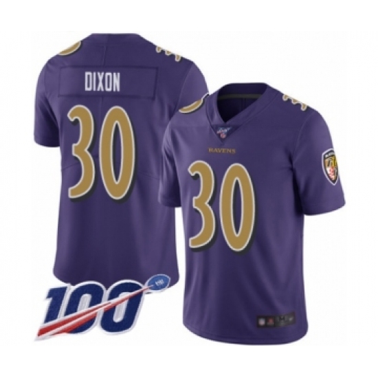 Men's Baltimore Ravens #30 Kenneth Dixon Purple Team Color Vapor Untouchable Limited Player 100th Season Football Jersey