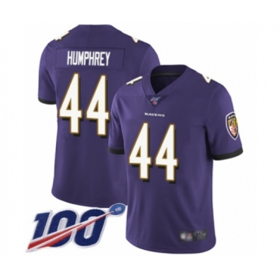 Men's Baltimore Ravens #44 Marlon Humphrey Purple Team Color Vapor Untouchable Limited Player 100th Season Football Jersey