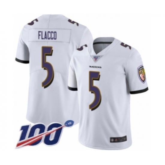 Men's Baltimore Ravens #5 Joe Flacco White Vapor Untouchable Limited Player 100th Season Football Jersey