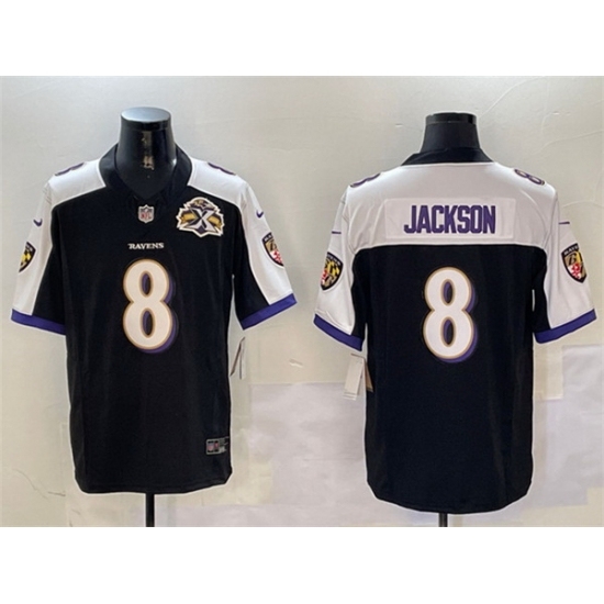 Men's Baltimore Ravens #8 Lamar Jackson Black White 2023 F U S E With Throwback Vapor Limited Jersey