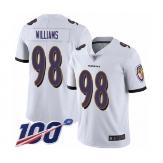 Men's Baltimore Ravens #98 Brandon Williams White Vapor Untouchable Limited Player 100th Season Football Jersey