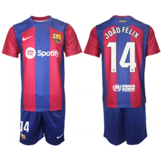 >Men's Barcelona #14 Joao Felix Blue Red 2023-24 Home Soccer Jersey