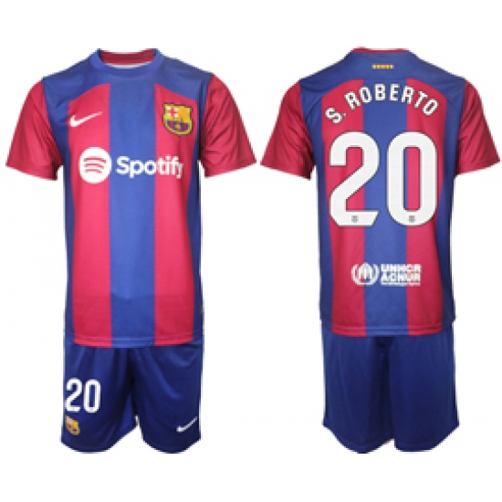 Men's Barcelona #20 S.Roberto Blue Red 2023-24 Home Soccer Jersey