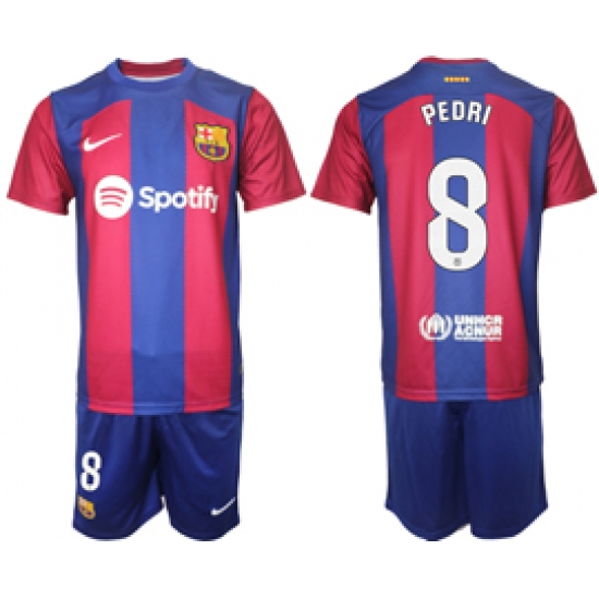 >Men's Barcelona #8 Pedri Blue Red 2023-24 Home Soccer Jersey