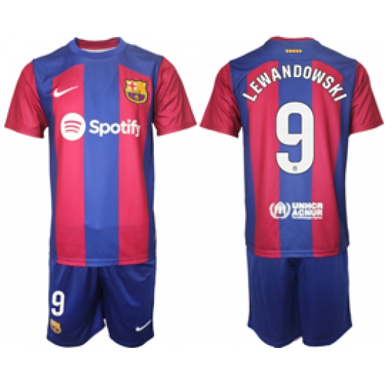 Youth Barcelona #9 Lewandowski Blue Red 2023-24 Home Soccer Jersey