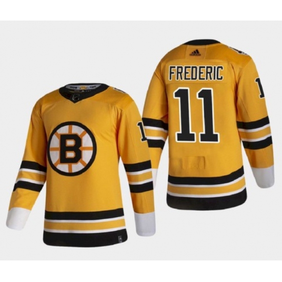 >Men's Boston Bruins #11 Trent Frederic Gold Stitched NHL Jersey