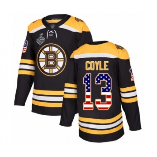>Men's Boston Bruins #13 Charlie Coyle Authentic Black USA Flag Fashion 2019 Stanley Cup Final Bound Hockey Jersey