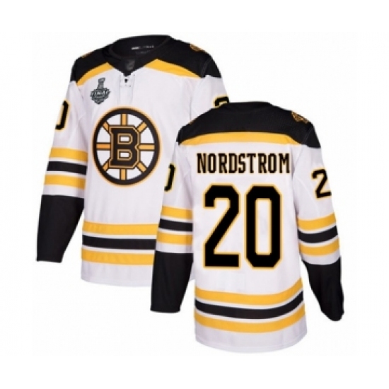 Men's Boston Bruins #20 Joakim Nordstrom Authentic White Away 2019 Stanley Cup Final Bound Hockey Jersey