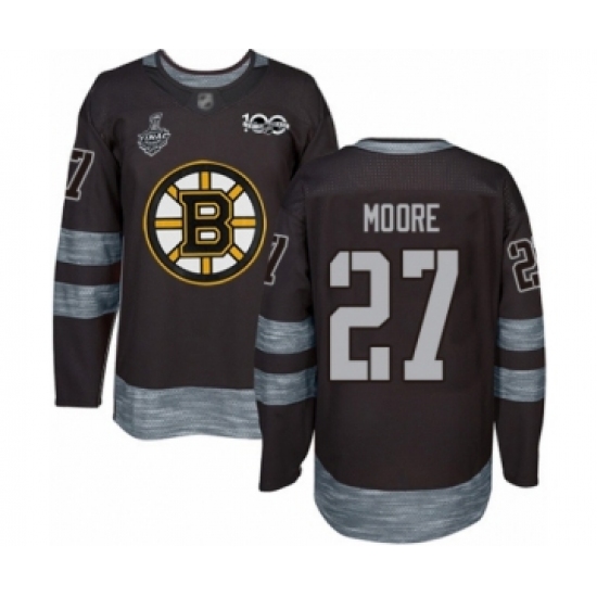 Men's Boston Bruins #27 John Moore Authentic Black 1917-2017 100th Anniversary 2019 Stanley Cup Final Bound Hockey Jersey