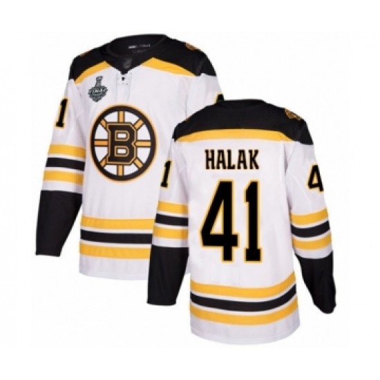 Men's Boston Bruins #41 Jaroslav Halak Authentic White Away 2019 Stanley Cup Final Bound Hockey Jersey