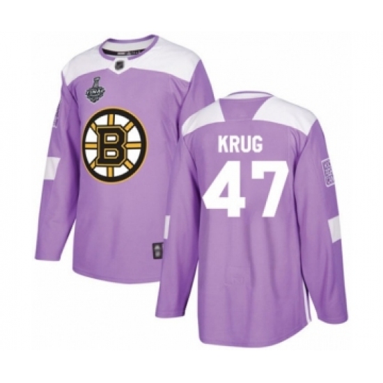 Men's Boston Bruins #47 Torey Krug Authentic Purple Fights Cancer Practice 2019 Stanley Cup Final Bound Hockey Jersey