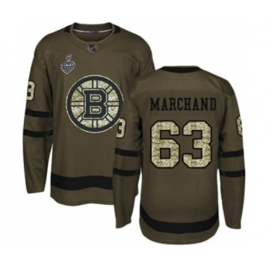 Men's Boston Bruins #63 Brad Marchand Authentic Green Salute to Service 2019 Stanley Cup Final Bound Hockey Jersey