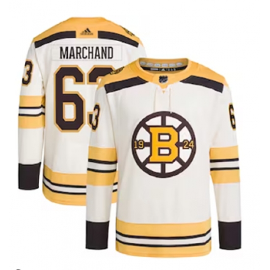 Men's Boston Bruins #63 Brad Marchand Cream With Rapid7 100th Anniversary Stitched Jersey
