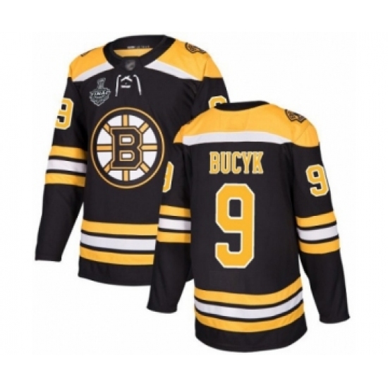 >Men's Boston Bruins #9 Johnny Bucyk Authentic Black Home 2019 Stanley Cup Final Bound Hockey Jersey
