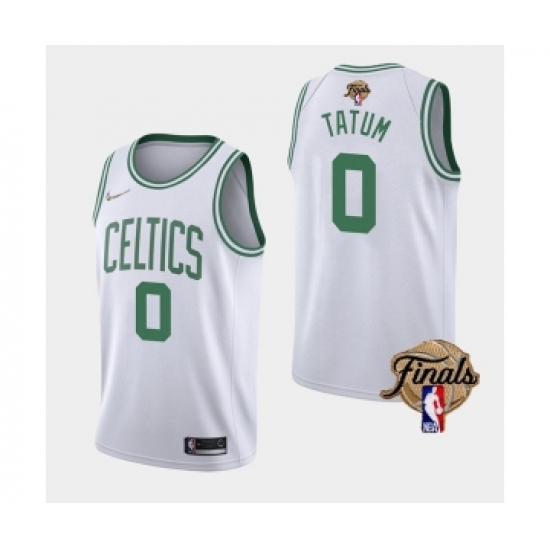 >Men's Boston Celtics #0 Jayson Tatum 2022 White NBA Finals Stitched Jersey