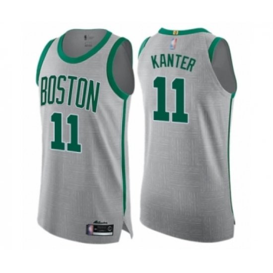 >Men's Boston Celtics #11 Enes Kanter Authentic Gray Basketball Jersey - City Edition